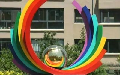 彩色不銹鋼雕塑是結合噴漆制作而成,在雕塑成形之后只需要簡單的打磨,然后刮膩子、噴漆,使得作品能夠表現豐富的色彩。相比鏡面、拉絲等不銹鋼雕塑的制作工藝來說,噴漆不銹鋼雕塑色彩表現豐富、耐用性下降,在長期的日曬雨淋作用下,可能出現起殼、顏色脫落的情況。